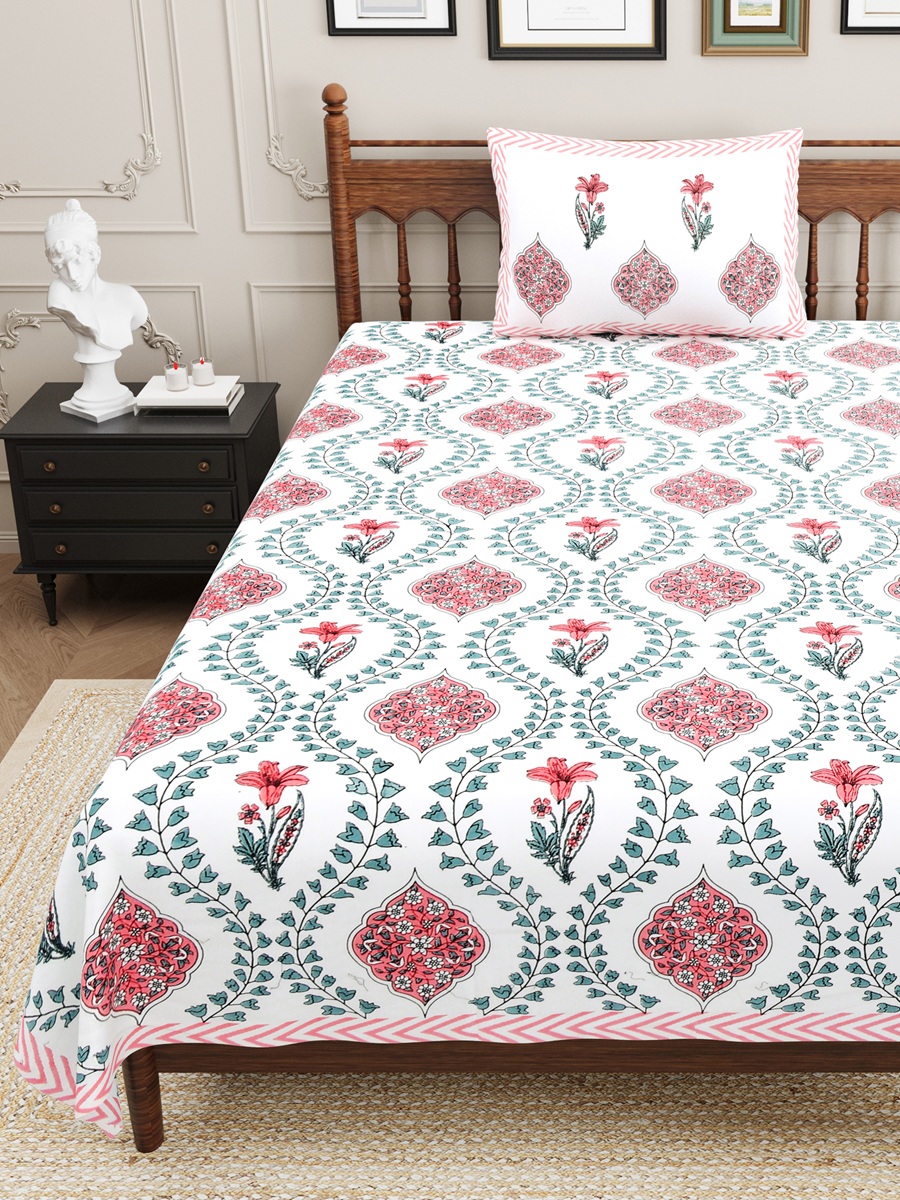 Ethnic Jaipuri Pink Floral Print Single Bed Sheets ₹1,049 Original price was: ₹1,049.₹599Current price is: ₹599.