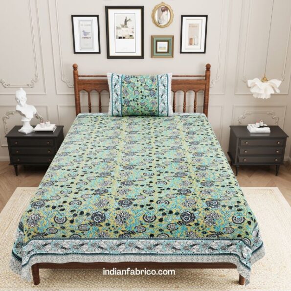 Ethnic Jaipuri Charm Green Single Bed Sheet