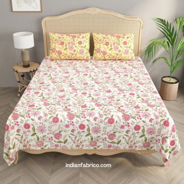 These 93″ x 108″ inch size twill premium quality cotton Double bed size bed sheets are an absolute delight to sleep on and brightens any bedroom’s decor. Bring a soft and cozy feel to your bed with our printed brushed pure cotton bed sheet set.